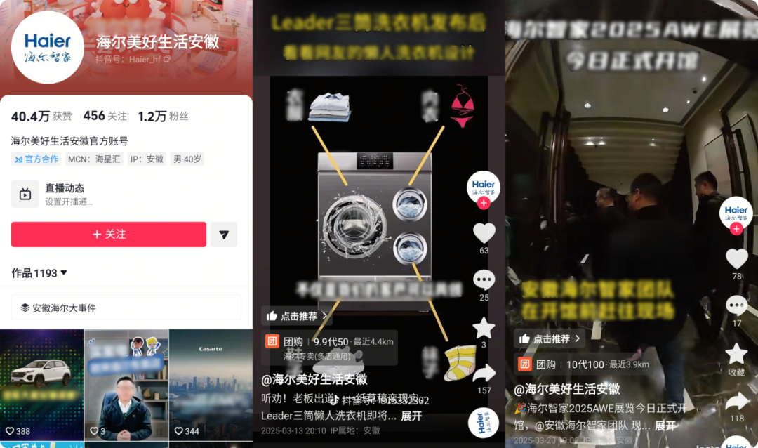 如@海尔美好生活安徽 在懒人洗衣机线下展出期间,迅速制作“安徽团队带你看展”内容,不仅带领本地用户"云逛展",更巧妙链接本地团购优惠,实现线上内容引流、线下到店核销的闭环。