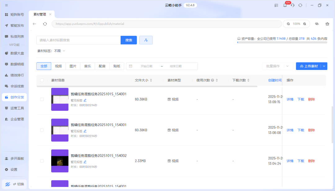 1. 协同管理:通过批量导入账号、角色权限分级设置,实现千级账号统一管控,总部素材库实时共享,区域二次创作后经智能审核保障调性;