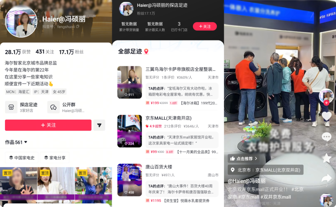 以抖音KOS-Haier@冯硕丽为例,其"海尔智家北京城市品牌总监"的专业身份为其内容奠定了信任基础。