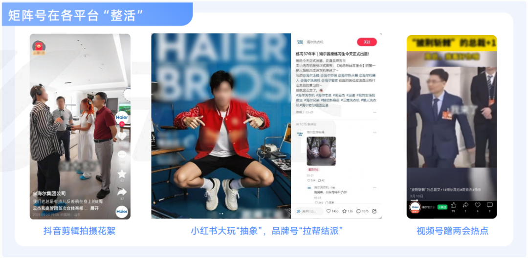 海尔的各类品牌账号摒弃了传统的单向输出模式,在各个平台开启了“整活”模式,用符合平台调性的创意互动持续制造声量。