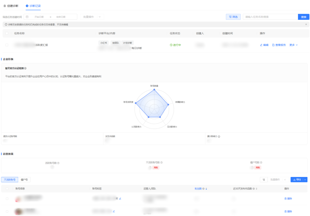 运营人员通过「账号诊断」功能建立每日监测机制,实时追踪所有顾问账号的内容发布、互动响应等行为数据。