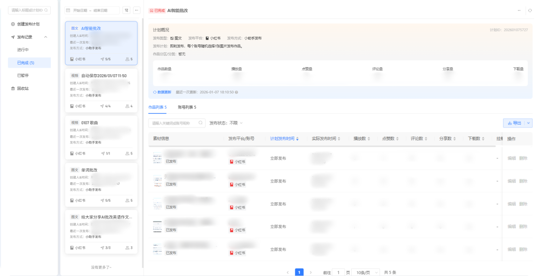 平台与内容形态繁杂:需同时管理短视频(抖音、视频号)、图文(小红书)、长图文(公众号)及中长视频(B站)等多种内容形式,创作与管理标准不一。