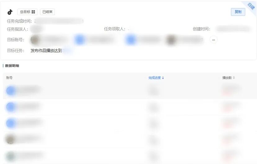 该机构使用「绩效考核」功能,利用系统的任务与数据面板,将“提升播放量”等团队目标拆解为清晰、可量化的具体任务,并设定明确时限。