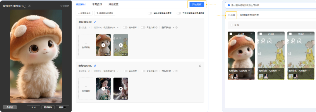 内容端依托AI智能混剪、AI文案生成、行业热点追踪能力,快速批量产出合规优质短视频。