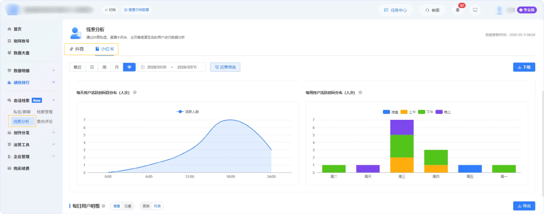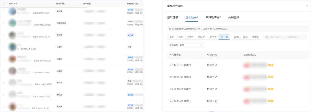 系统还可自动抓取私信、直播等渠道留资线索,自动标记用户属地、意向阶段与来源,形成统一线索库。