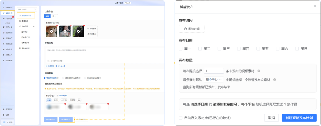 搭配企业统一素材库与客户端智能发布功能,实现多账号、多平台定时批量分发,既保证品牌调性统一,又能满足门店本地化内容需求,大幅降低创作与发布成本。