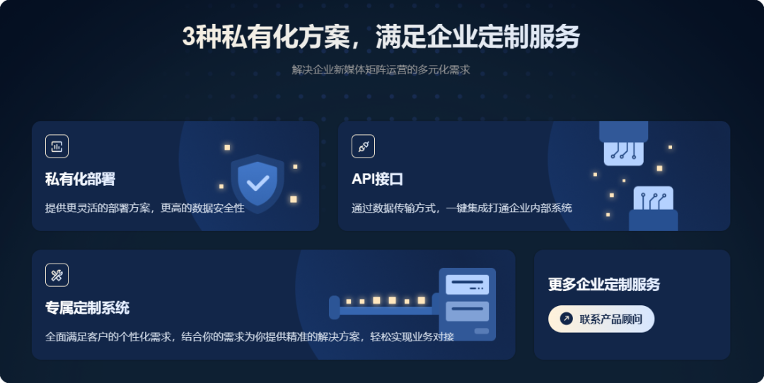 从账号管理、内容生产、任务执行、数据复盘到线索转化、风险防控全闭环支撑,让大型连锁品牌的矩阵运营更规范、更高效、更具增长力。