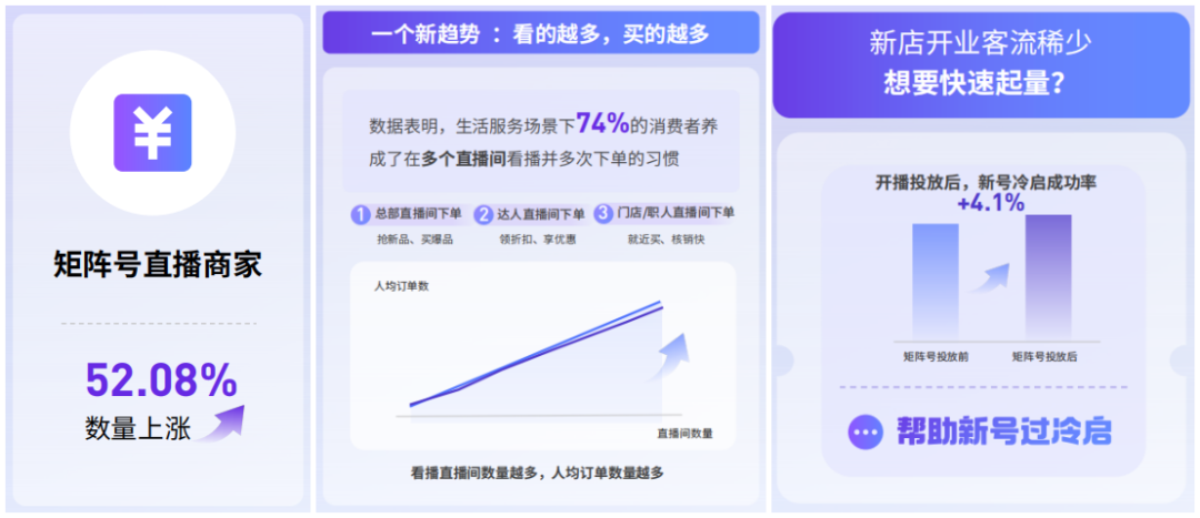 有193万商家在本地推用矩阵号做生意,直播数量上涨52.08%;