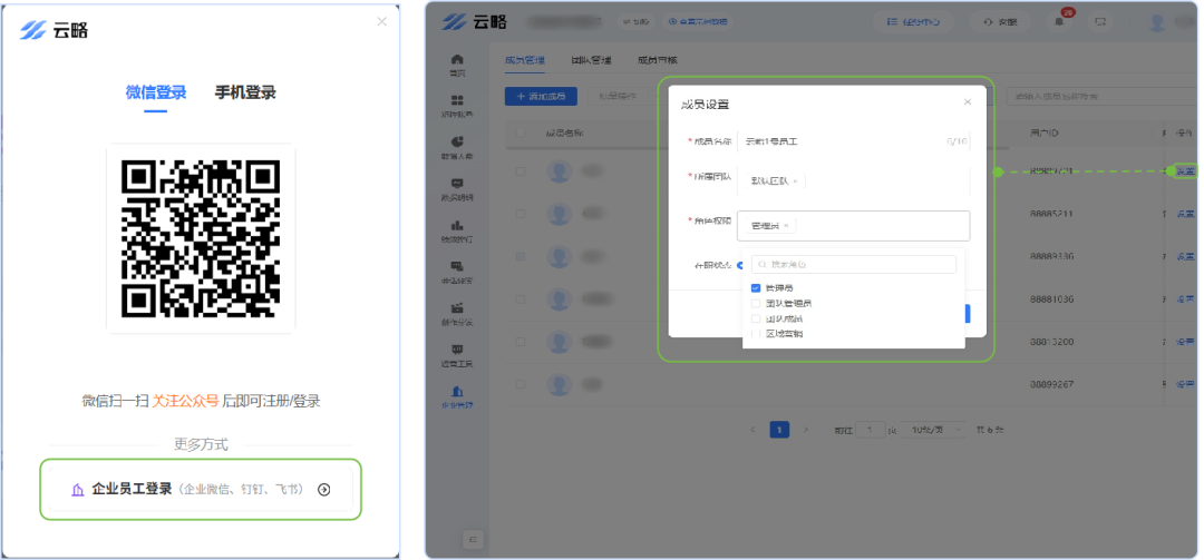 可自定义搭建树状多层级权限体系,配合企微、钉钉、飞书多方式登录,让总部统筹、区域监管、门店执行权责清晰、协作顺畅,彻底解决跨地区团队管理难、账号状态难掌控、数据权限不规范的痛点。